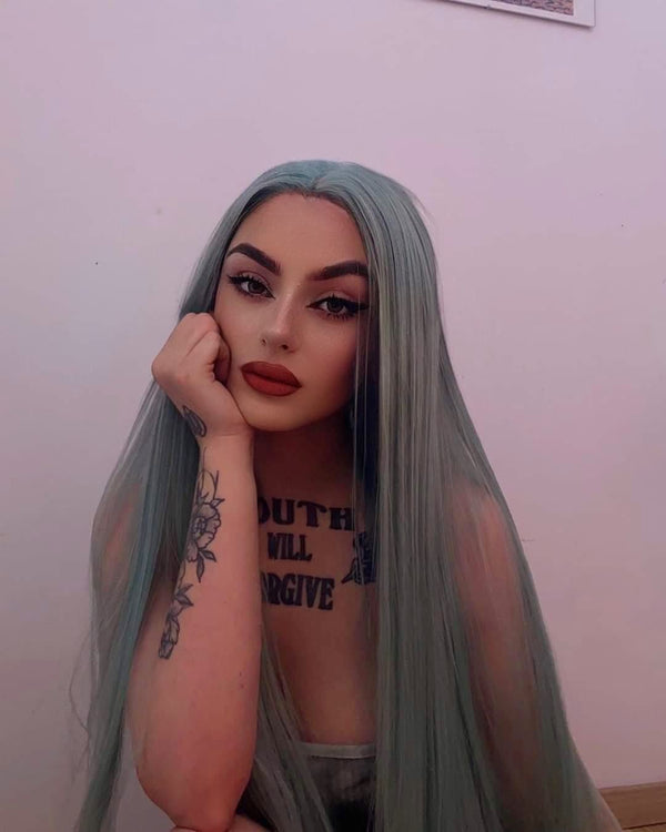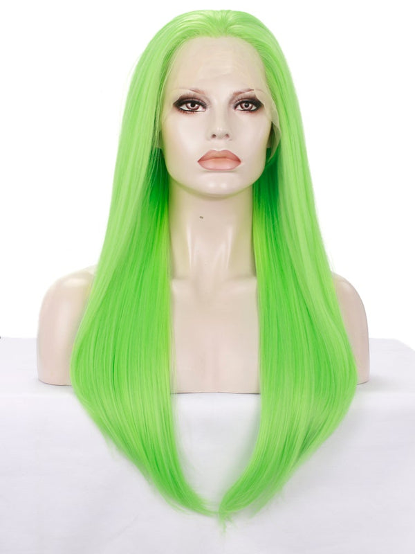Long Straight Green Synthetic Lace Front Wig For Women - Imstyle-wigs