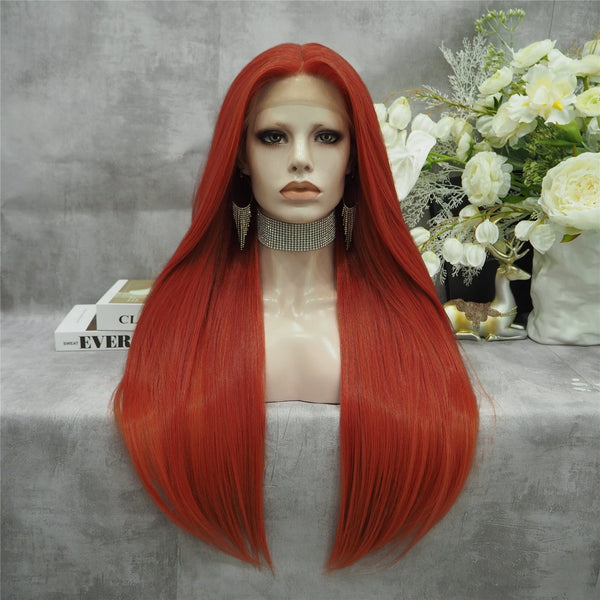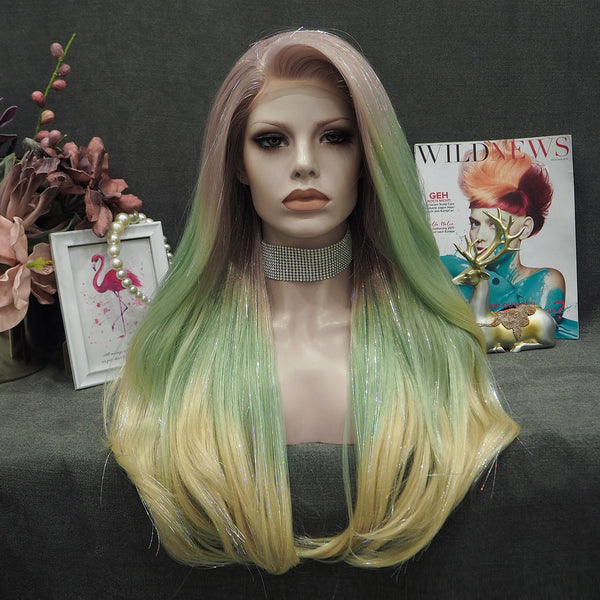 Ann - Sand Red to Green Blonde Ombre with Tinsel Long Straight Synthetic Lace Front Wig - Imstyle-wigs