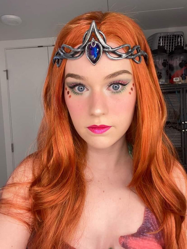 Ann - Sand Red to Green Blonde Ombre with Tinsel Long Straight Synthetic Lace Front Wig