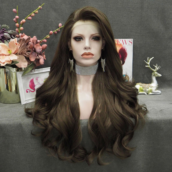 Bonnie Brown Highlights long Body Wave Synthetic Lace Front Daily Natural Wig - Imstyle-wigs