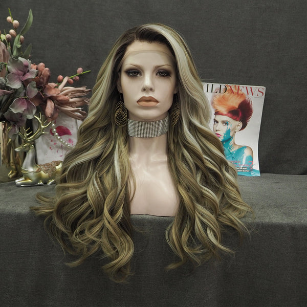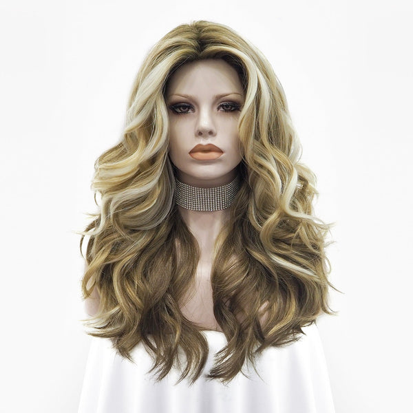 Imstyle - Sandra - brown and blonde with highlight wavy 26inches with no parting synthetic lace front wig - Imstylewigs