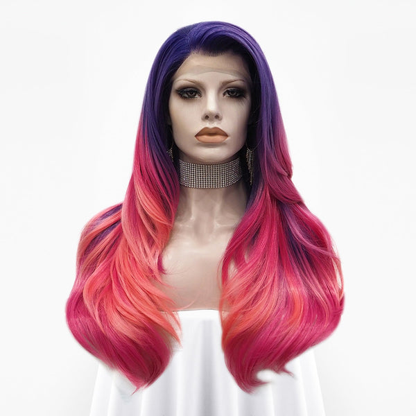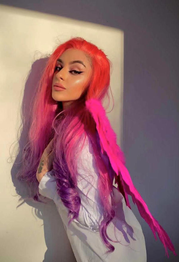 Venus - Coral-orange Pink Purple Ombre With Silver Tinsel Synthetic Lace Front Wig - Imstyle-wigs