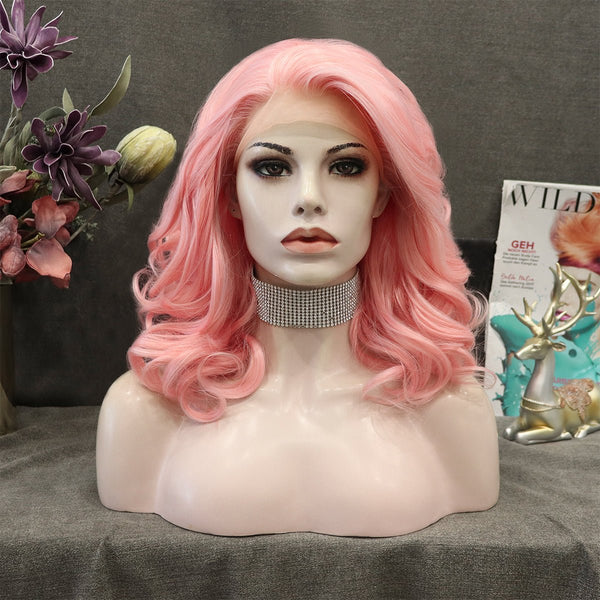Peach Pink Medium Wavy Synthetic Wigs IM19125 - Imstyle-wigs