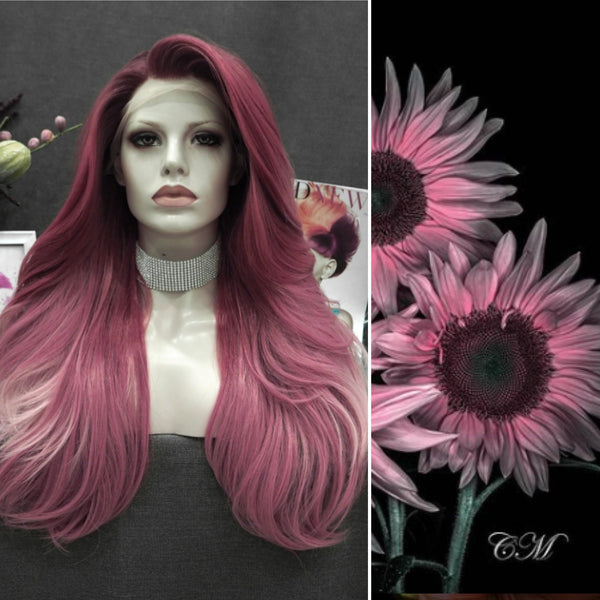 Rose Pink Ombre Long Loose Wave Synthetic Lace Front Wig