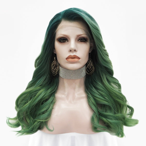 Autumn-Green Wavy Synthetic Lace Front Wig - Imstyle-wigs