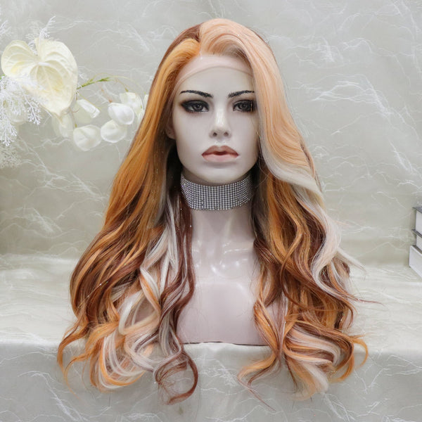 Annabelle - Blue-Blonde Orange Red with Tinsel Synthetic Lace Front Wig