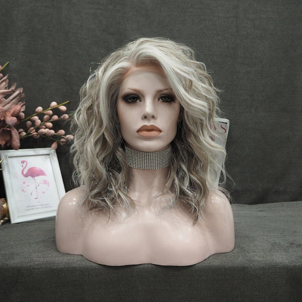imstyle blonde and grey color with tinsel no parting 20 inches with curly lace front - Imstylewigs
