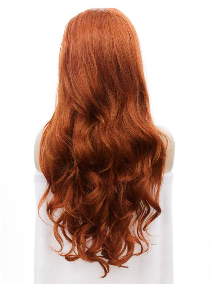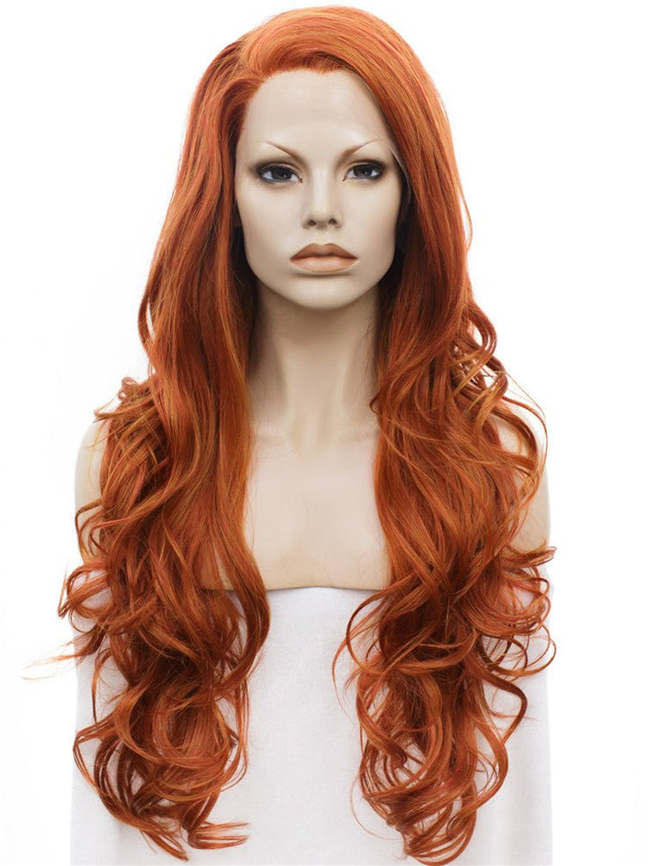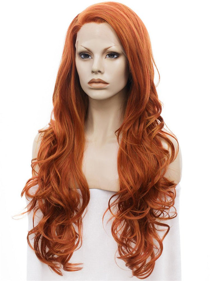 Auburn Orange Ginger Wave Long Synthetic Lace Fornt Wig