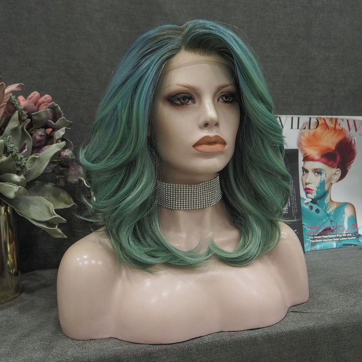 Autumn-Green Wavy Synthetic Lace Front Wig