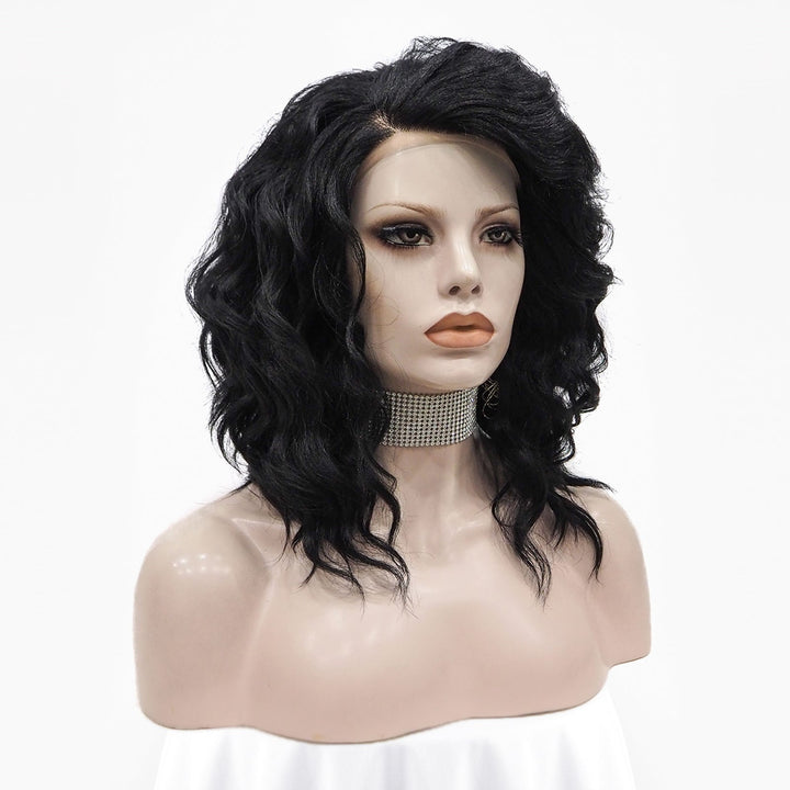 This beautiful Balayage Black Curly Synthetic Hair Lace Front Wig has been cut into a bob hairstyle with shoulder length, curly style with a deep hand-made parting, slimming any face shape and with lots of movement and flow. The lace frontal ensures the most realistic of looks with each strand appearing to grow naturally from the hairline.