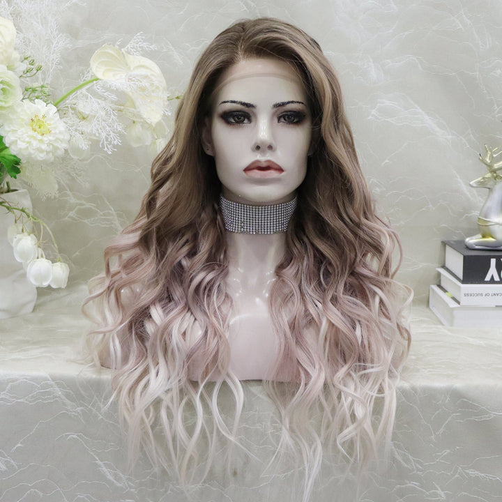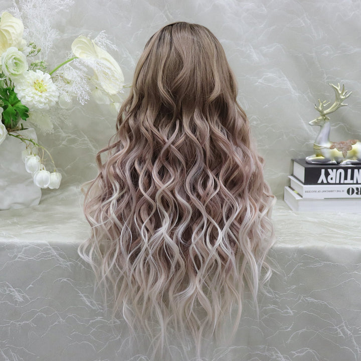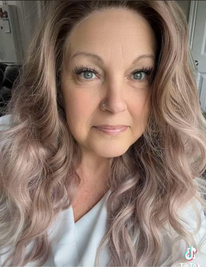 Brenda Collection-Amelia glueless Apricot color with wavy style 13*4 free parting with adjustable bands