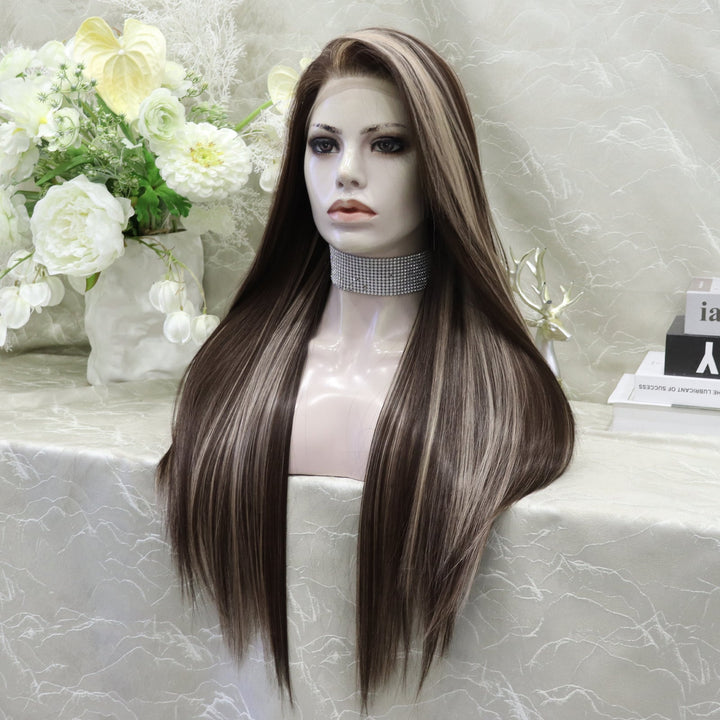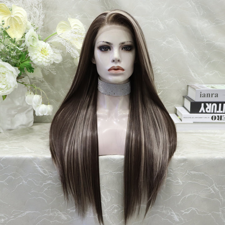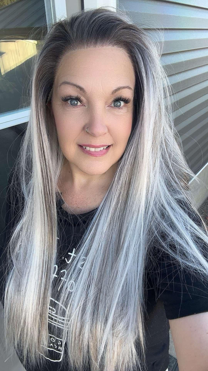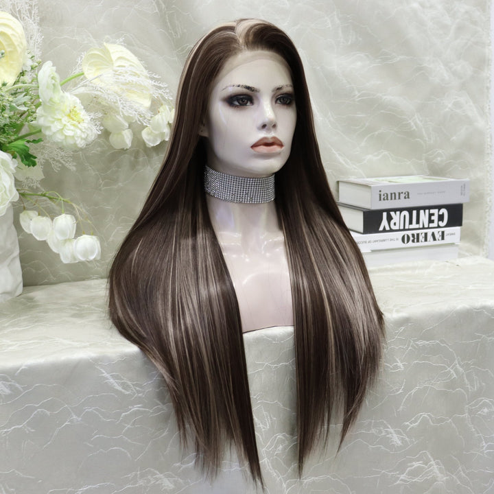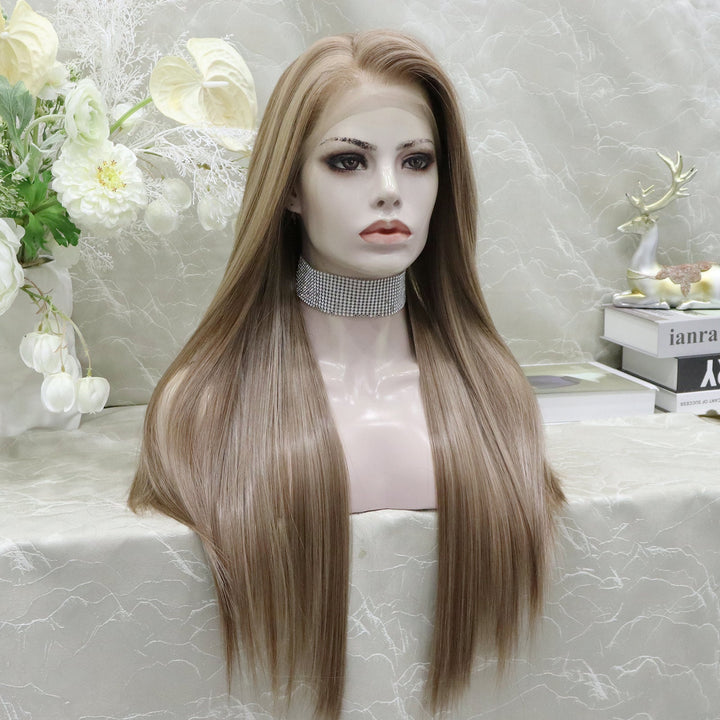 Brenda Collection Lowest density collection straight style with 13*4 lace front wigs silver mist & bubble tea & dark brown