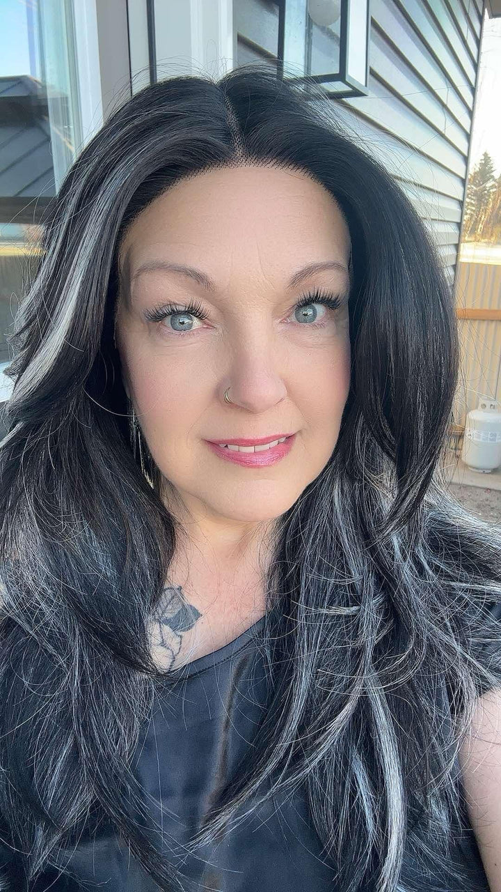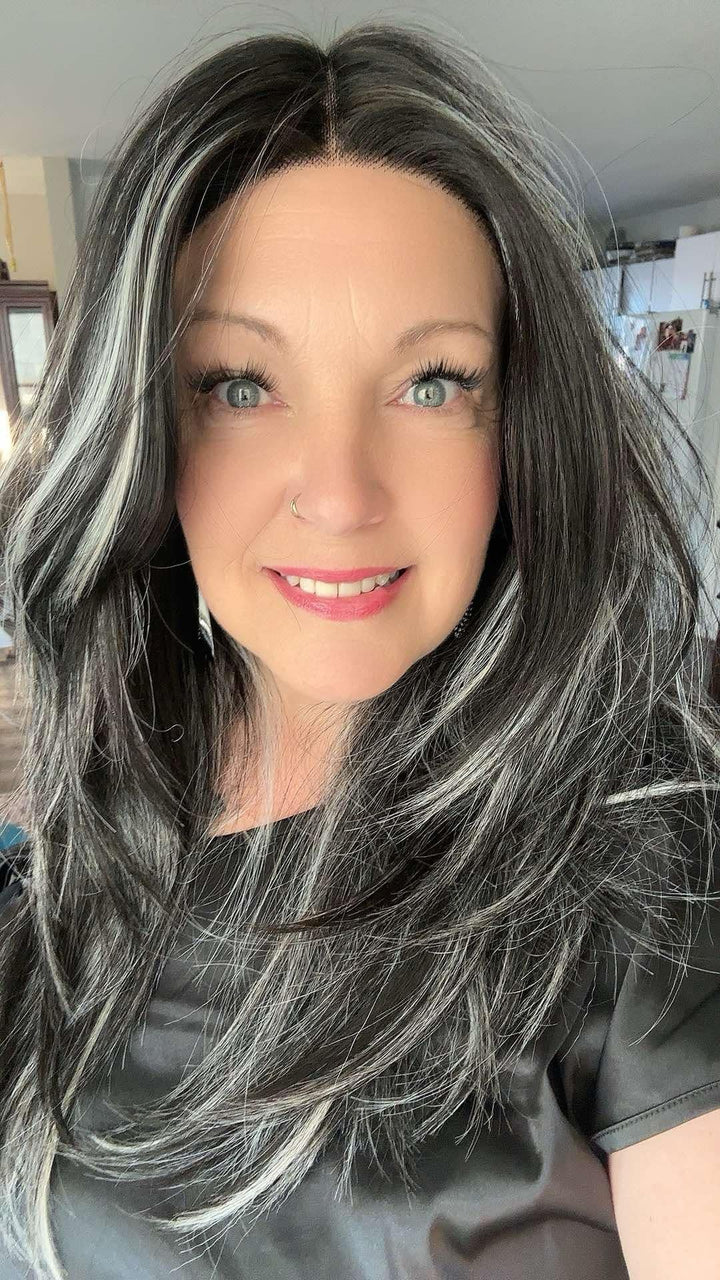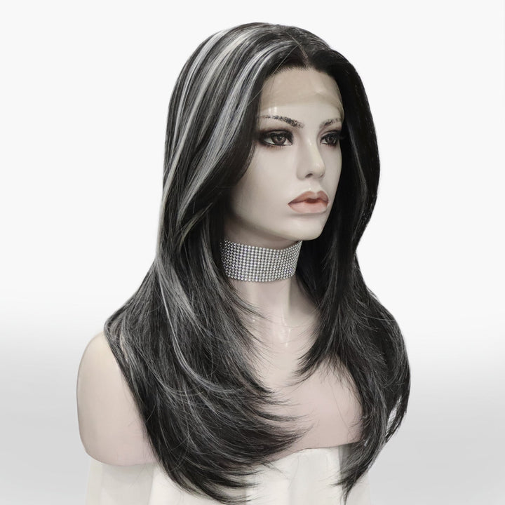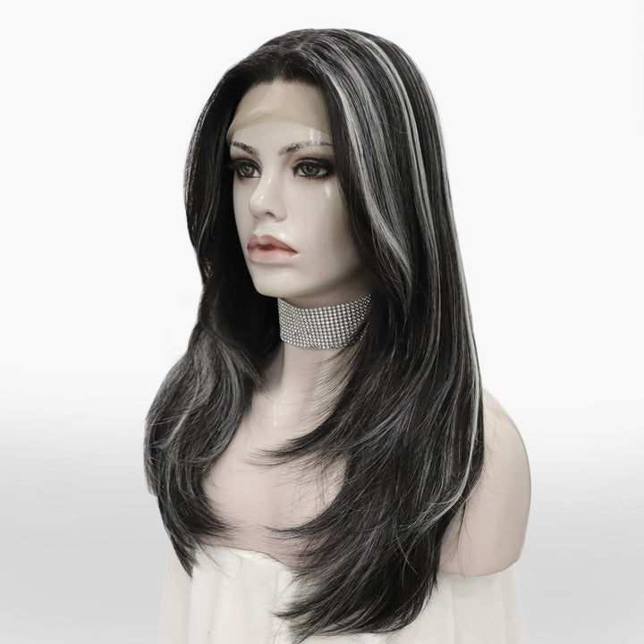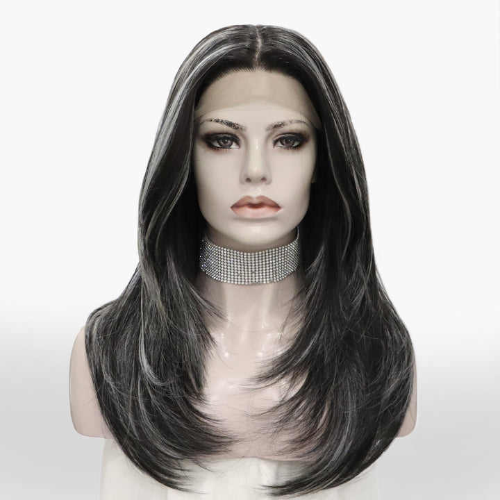 Brenda Collection-Yvonne black with Highlight layers cut salt and pepper style lace Front wig
