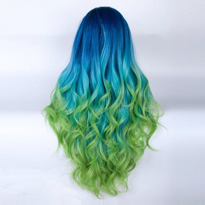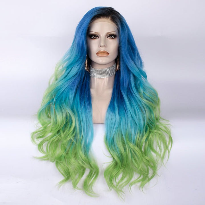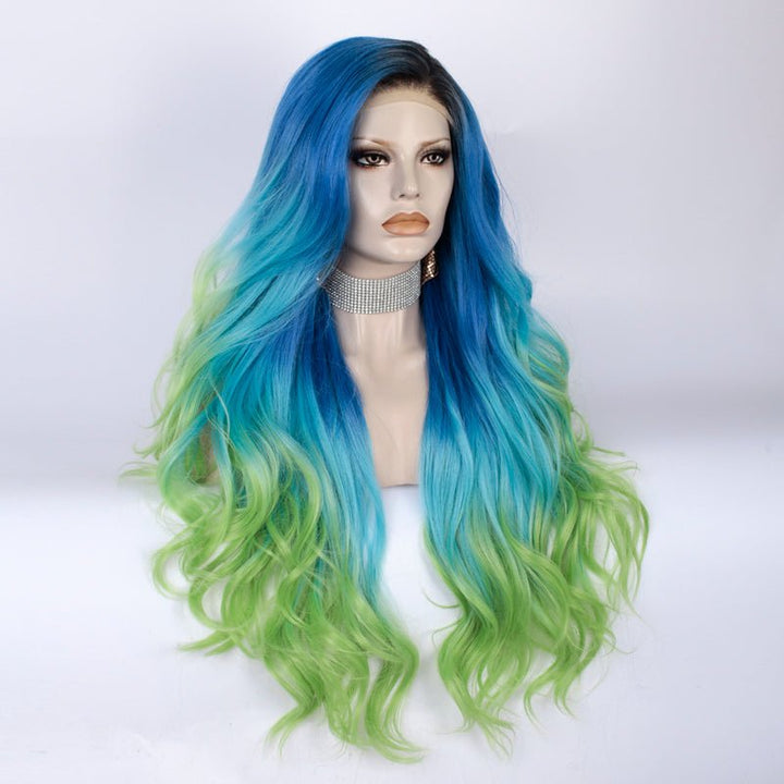 Blue to Green Ombre Dark Root Long Loose Wave Synthetic Lace Front Wig