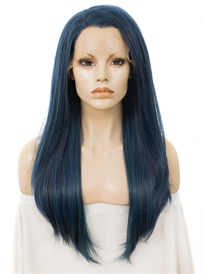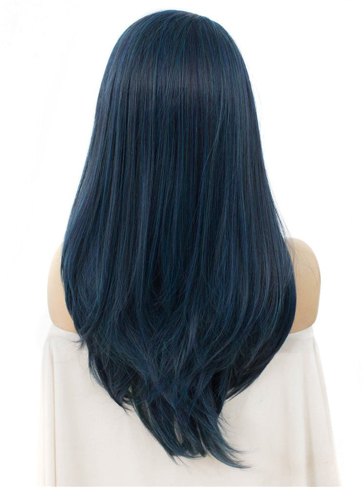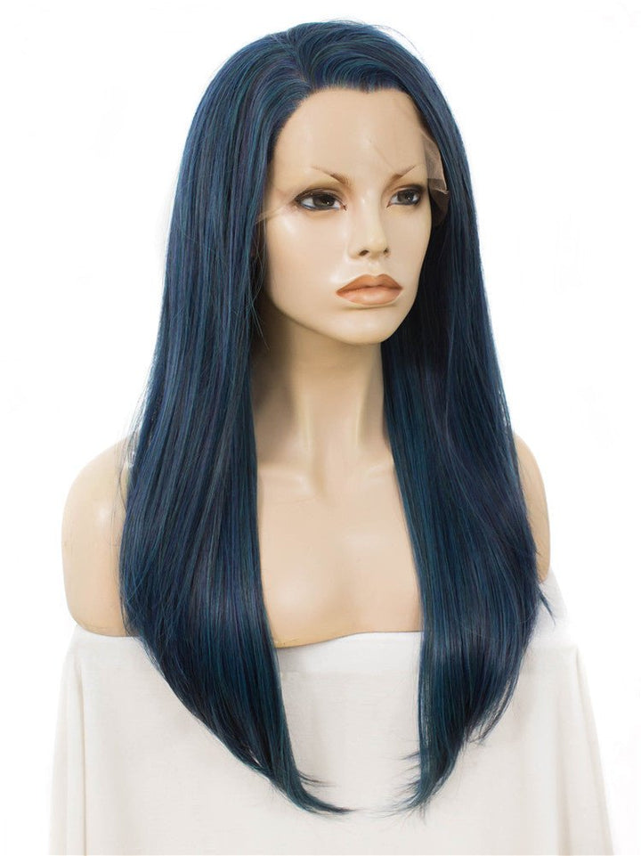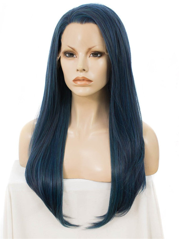 Dark Blue Long Straight Synthetic Lace Front Daily Wig