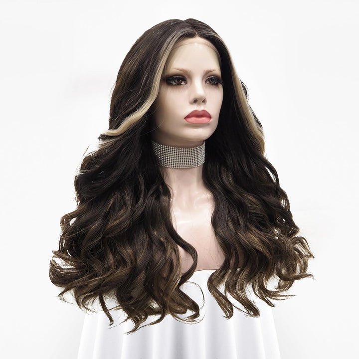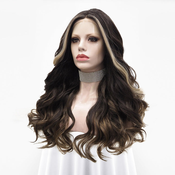 Dark Brown Highlights Wave Lace Front T Part Daily Party Wear Women Wig