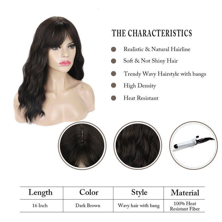 Taylor - Dark Brown Wavy Synthetic Wig With Bangs Imstyle