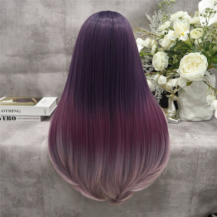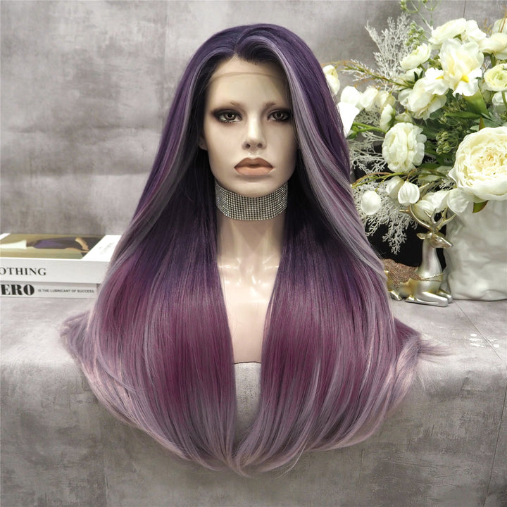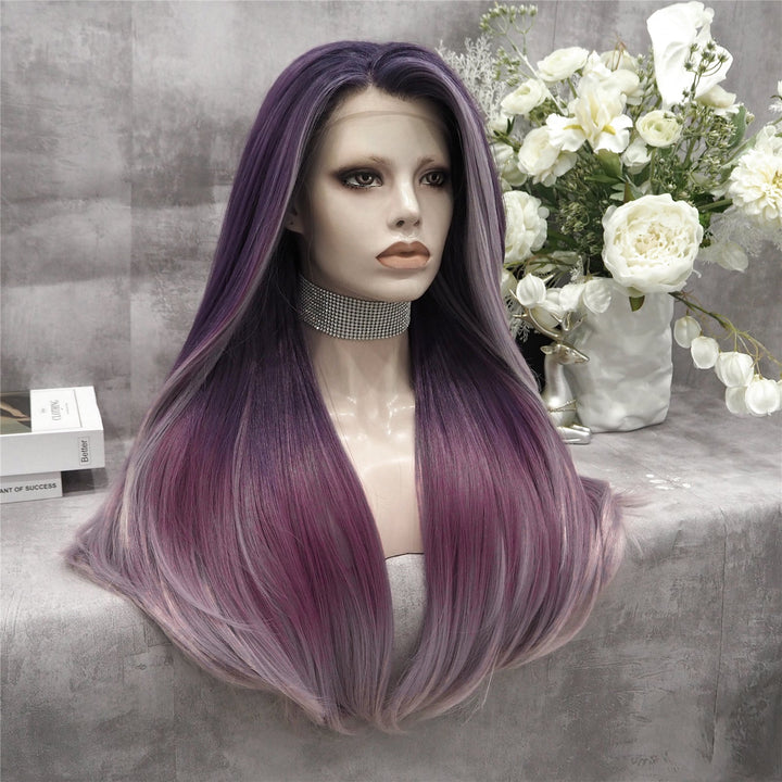 Grape Purple Fade Long Straight Synthetic Lace Front Imstyle Costume Wig
