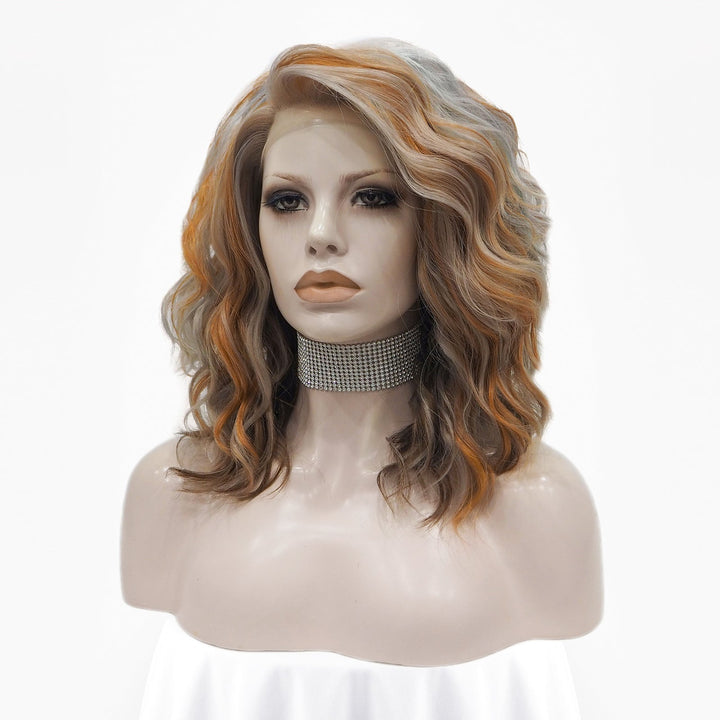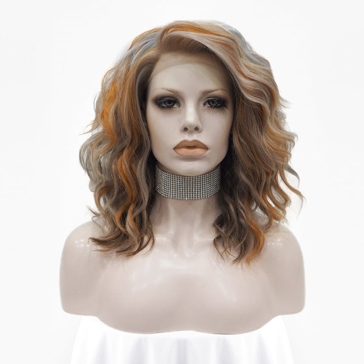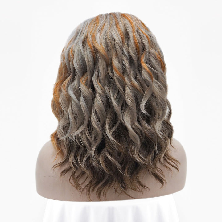 Gray Blue And Orange Highlight Short Curly Synthetic Lace Front Imstyle Wig