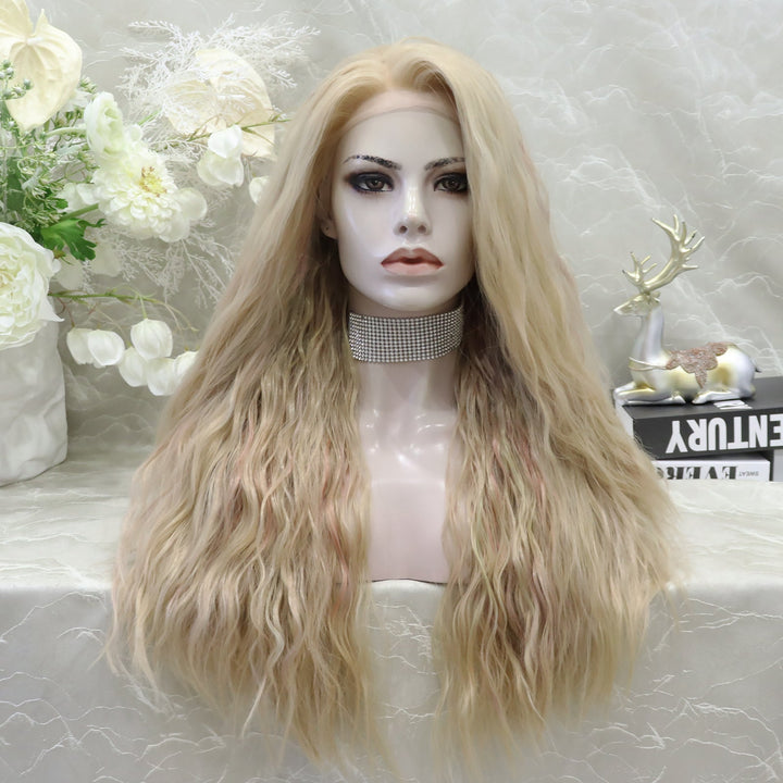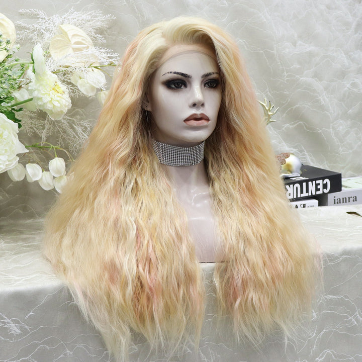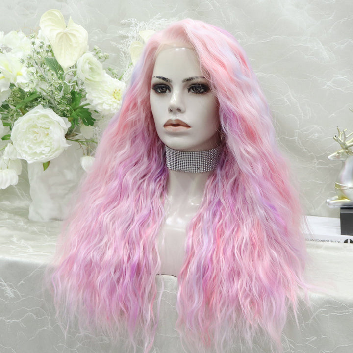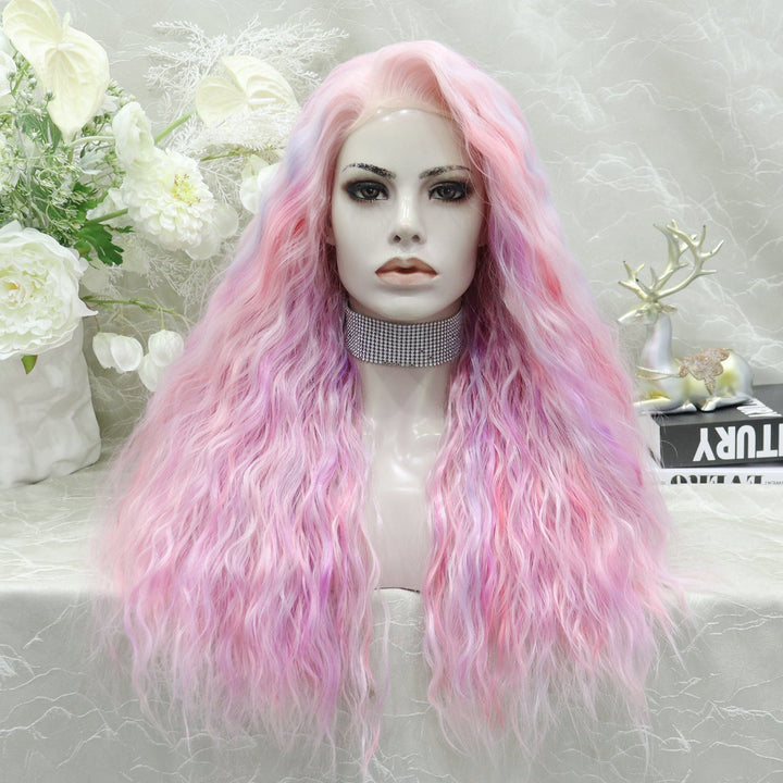 IMstyle Champagne-Multicolored Purple&Pink&Blonde Long Loose Curl 28'' Synthetic Lace Front Wig