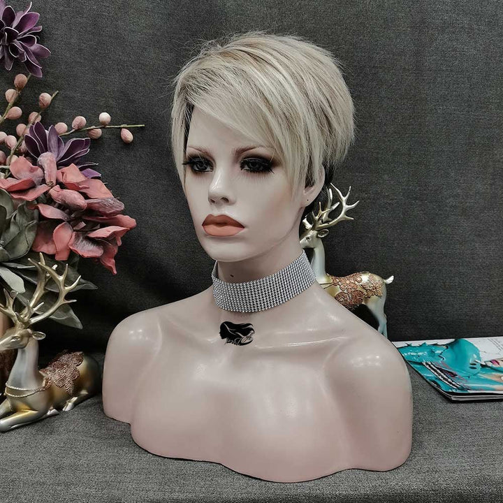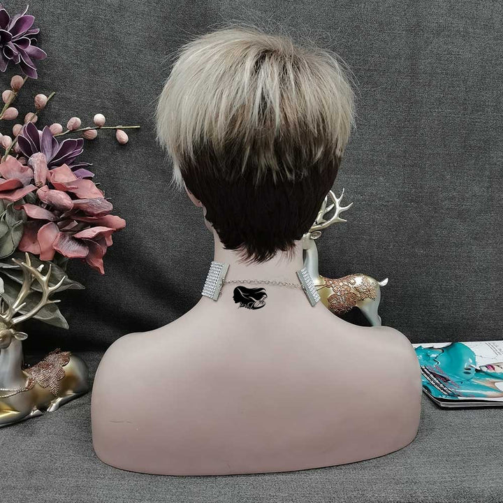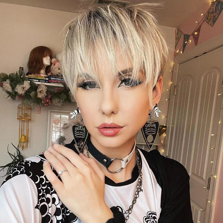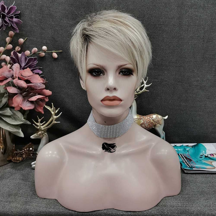 IMSTYLE Dark Roots Ombre Blonde Color Edgy Pixie Cut With Bangs Short Hairstyle Karen Wig For egirl - Imstylewigs