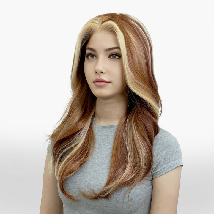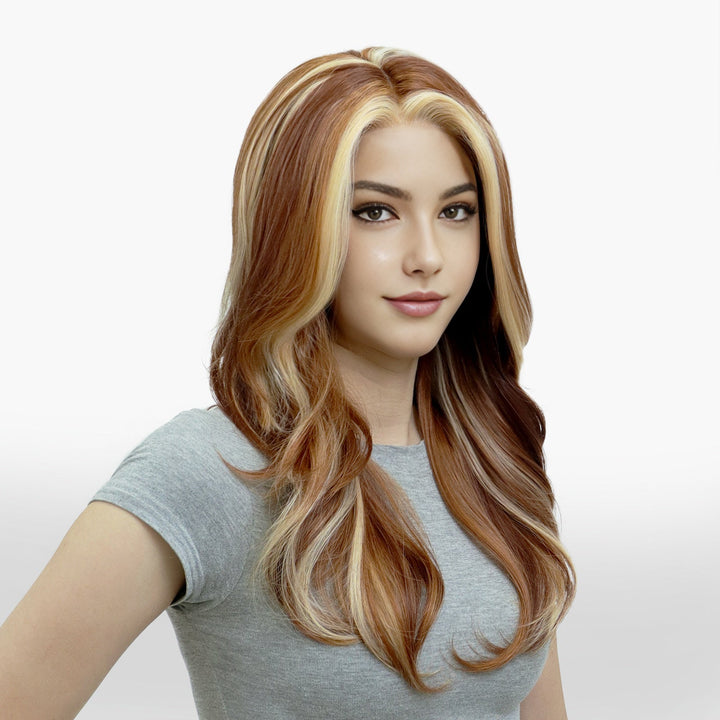 IMstyle Eileen calico color honey brown caramel blonde layer cut T-part lace front Glueless wigs TK126-2509