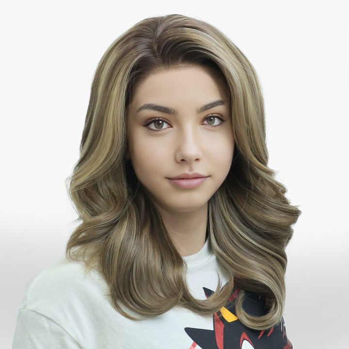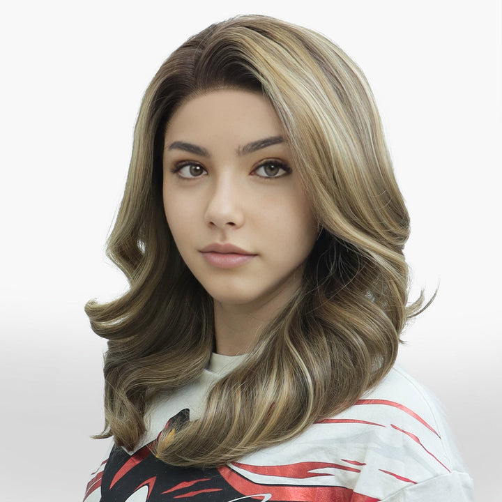 IMstyle Ellie Blonde Balayage Highlight Vanilla Brunette Luxury Bouncy Wavy 13*3 Free Parting Glueless Lace Front Syntehtic Wig for Daily Wear