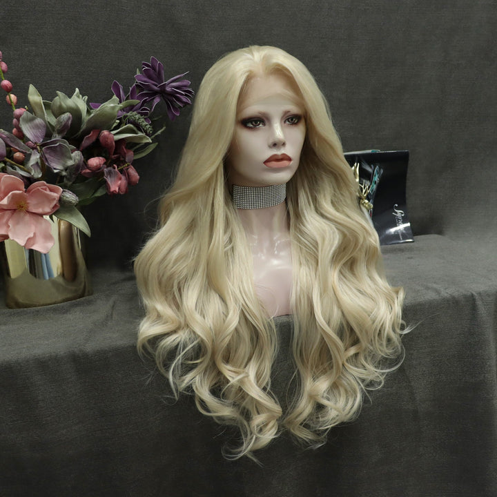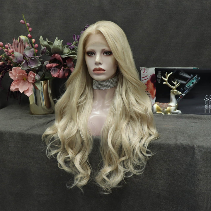 IMSTYLE Kristina 613 Blonde Wave Lace Front Wig Heat Resistant Synthetic Light Blonde Hair Wig for Cosplay Party Halloween 26 inch