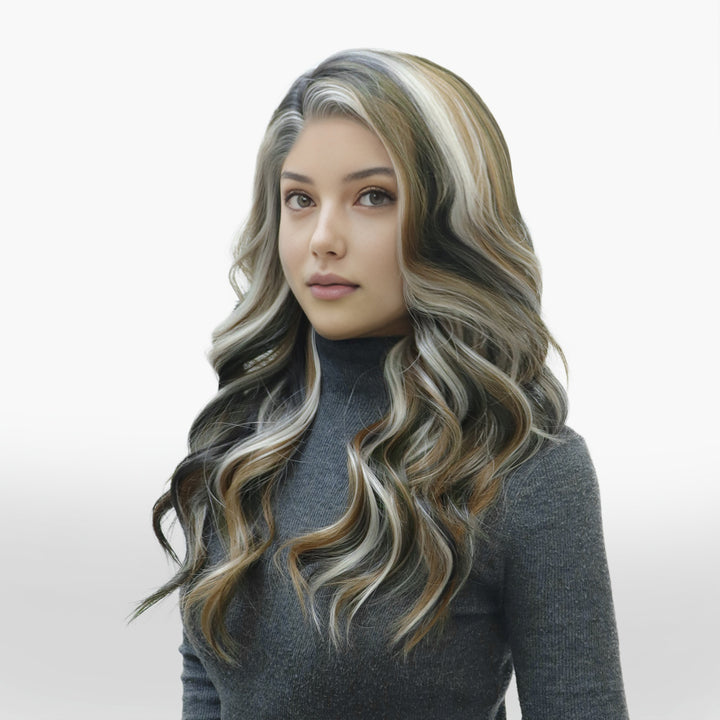 IMstyle Lexi Calico Dark Green & Caramel Brown Platinum Blonde Highlight Natural Wavy Glueless 13*4 Free Parting Lace Front Syntehtic Wig