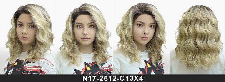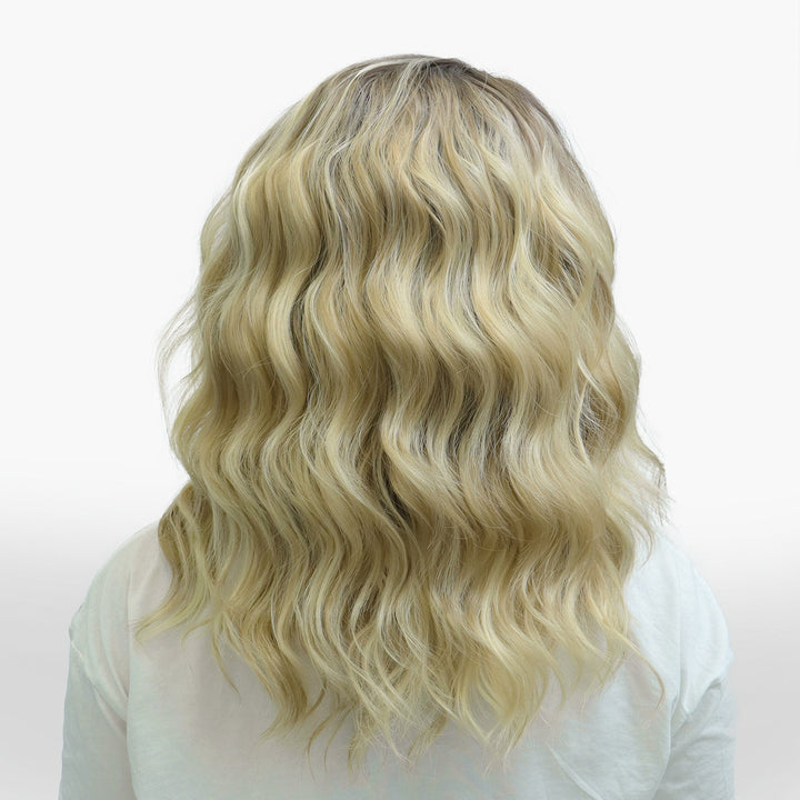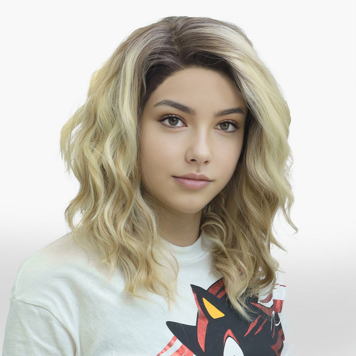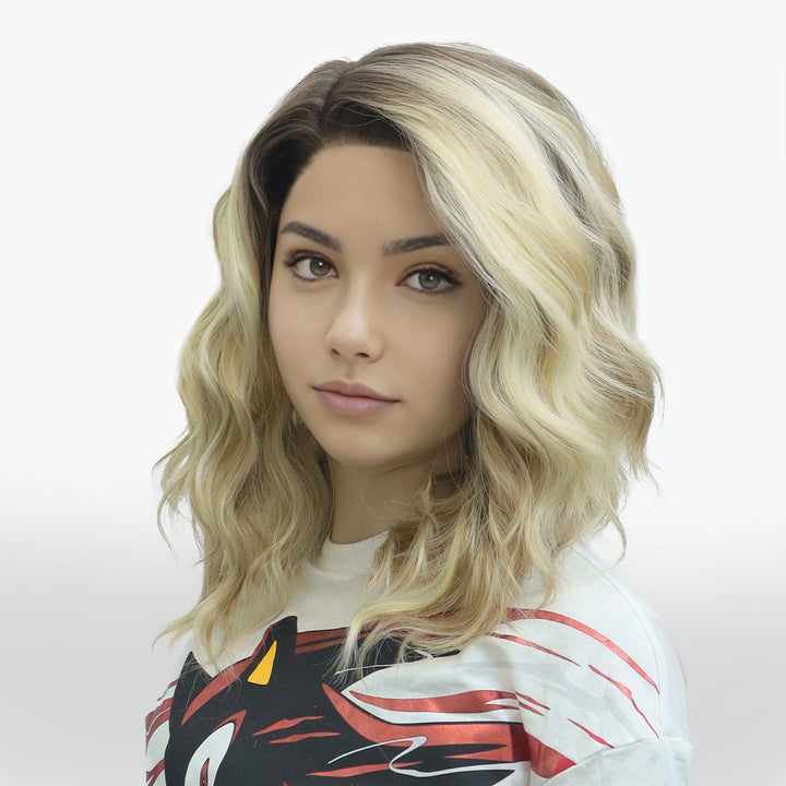 IMstyle Mila Blonde with Highlight Dark Rooting 13*4 Lace Front Shoulder Length Short Style Natural Wavy Curly Syntehtic Wig for Daily Wear