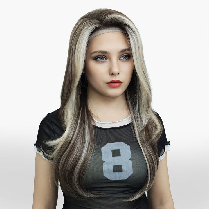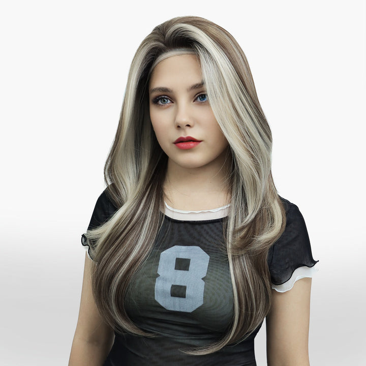 IMstyle MOCHA 13*4 glueless mocha brown with natural light blonde highlight free part Lace Front wig Heat Resistant