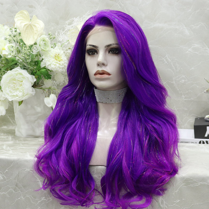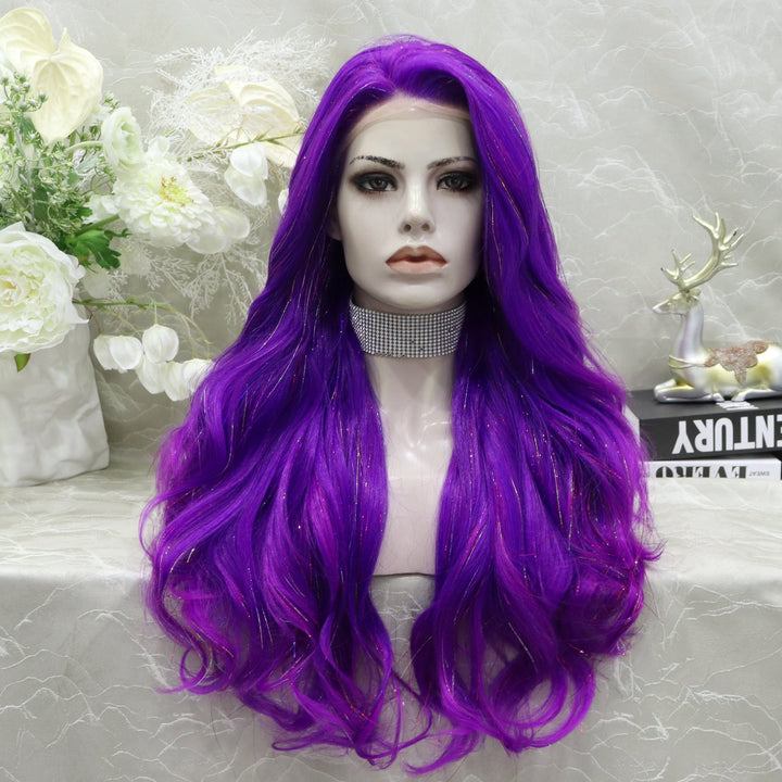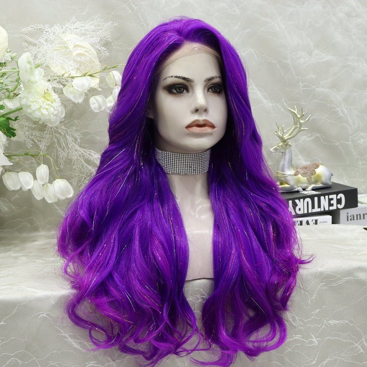 imstyle-Ann-purple Synthetic tinsel wig with layers no parting lace front wigs