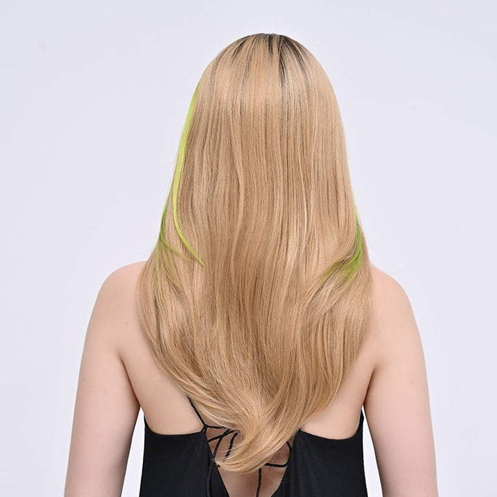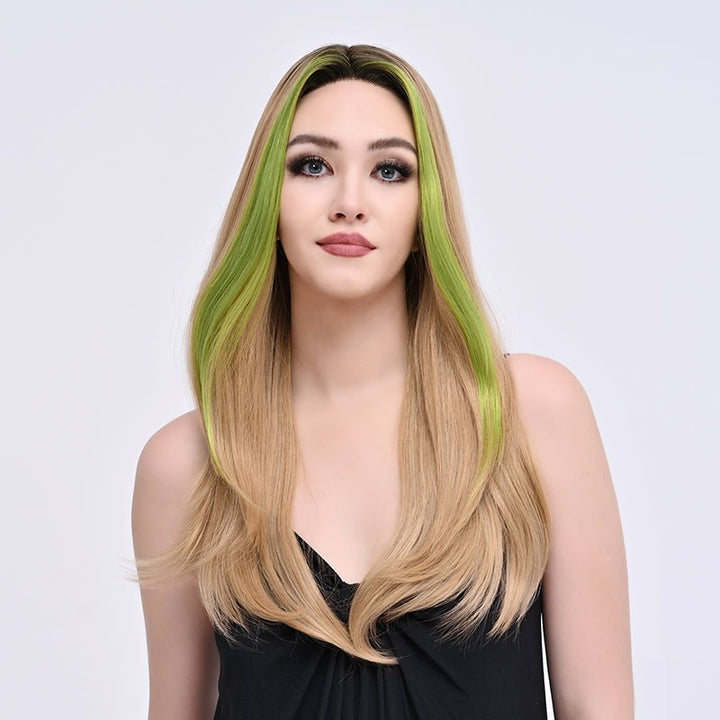 Imstylewigs-Sina-24 inches Skunk stripe light gold straight lace wigs