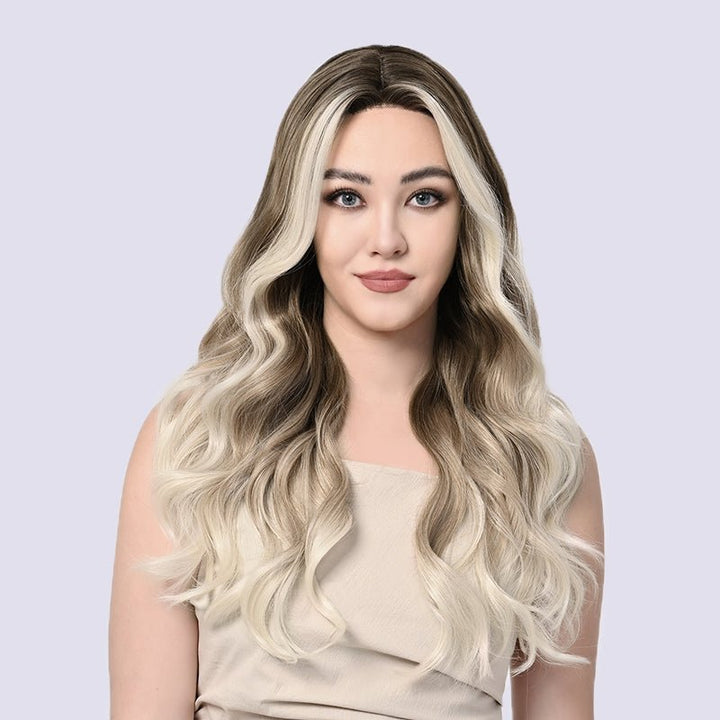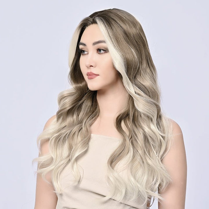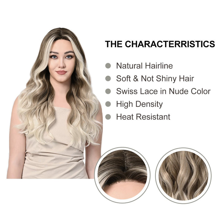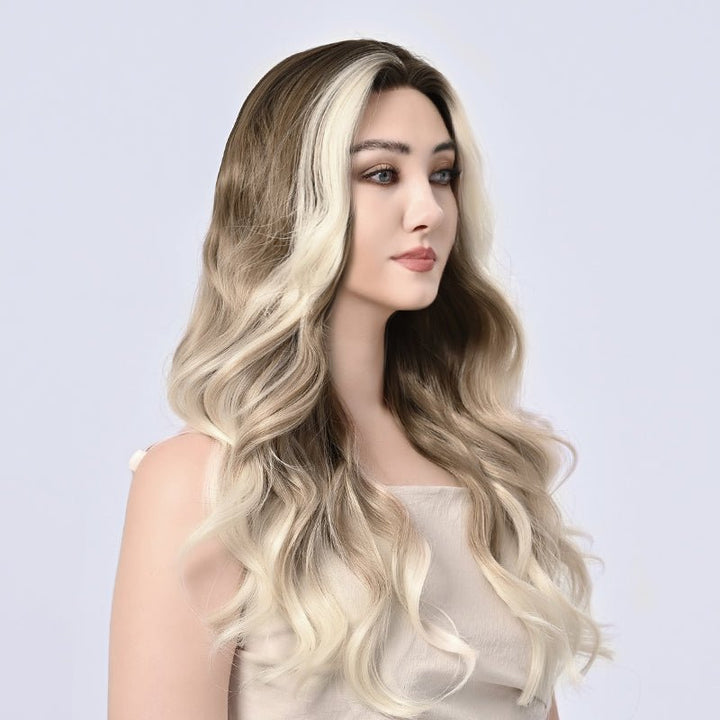 Imstylewigs-Ray-26 inches Skunk stripe ombre dark blonde lace wigs