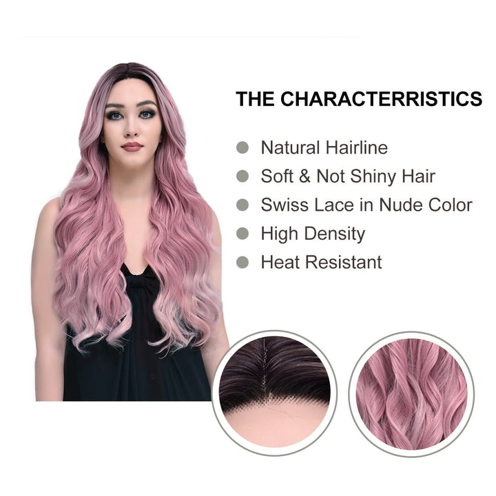 Imstylewigs-Rosie-28 inches Ombre pink body wavy lace wigs