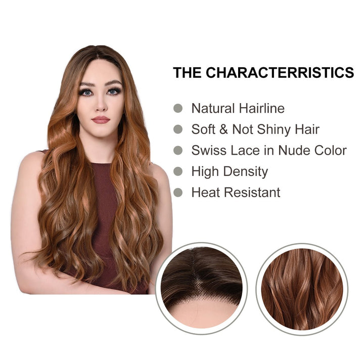 Imstylewigs 28 inches Skunk stripe orange brown body wavy lace wigs