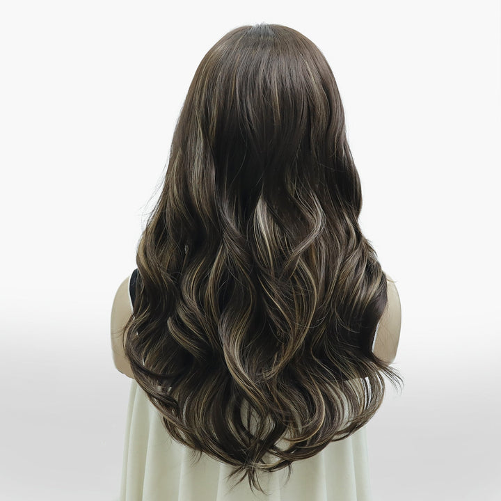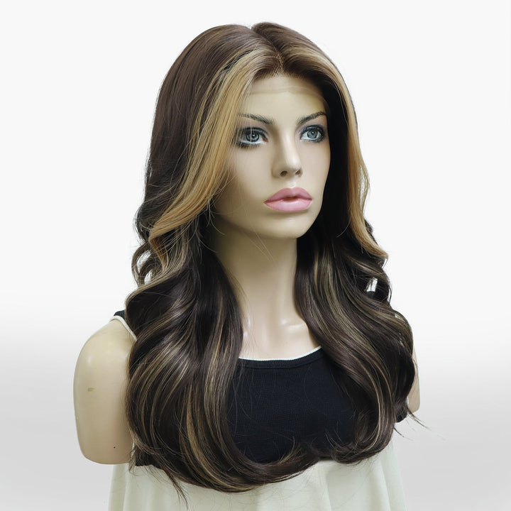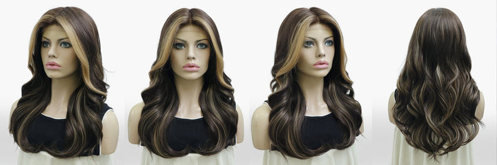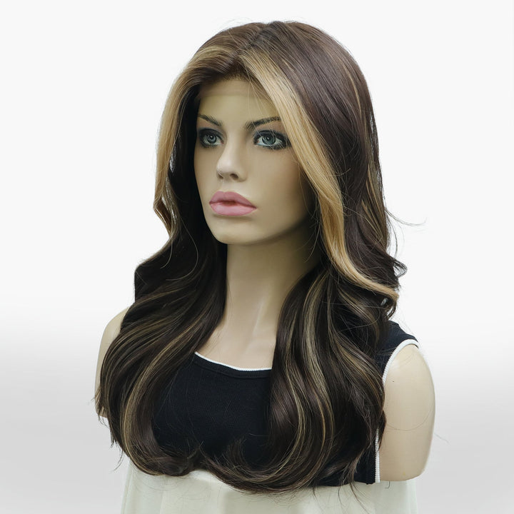Imstylewigs-Lia-22 inches Skunk stripe Highlight dark brown body wavy lace wigs