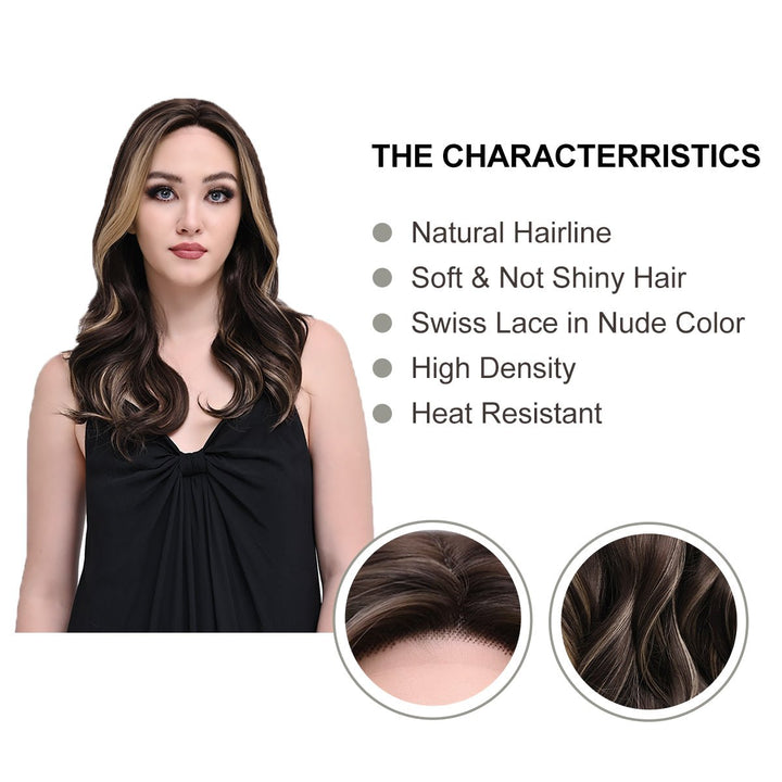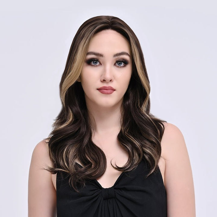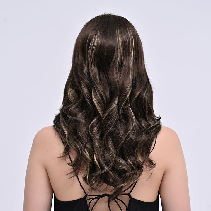 Imstylewigs-Lia-22 inches Skunk stripe Highlight dark brown body wavy lace wigs (Sharacollection)