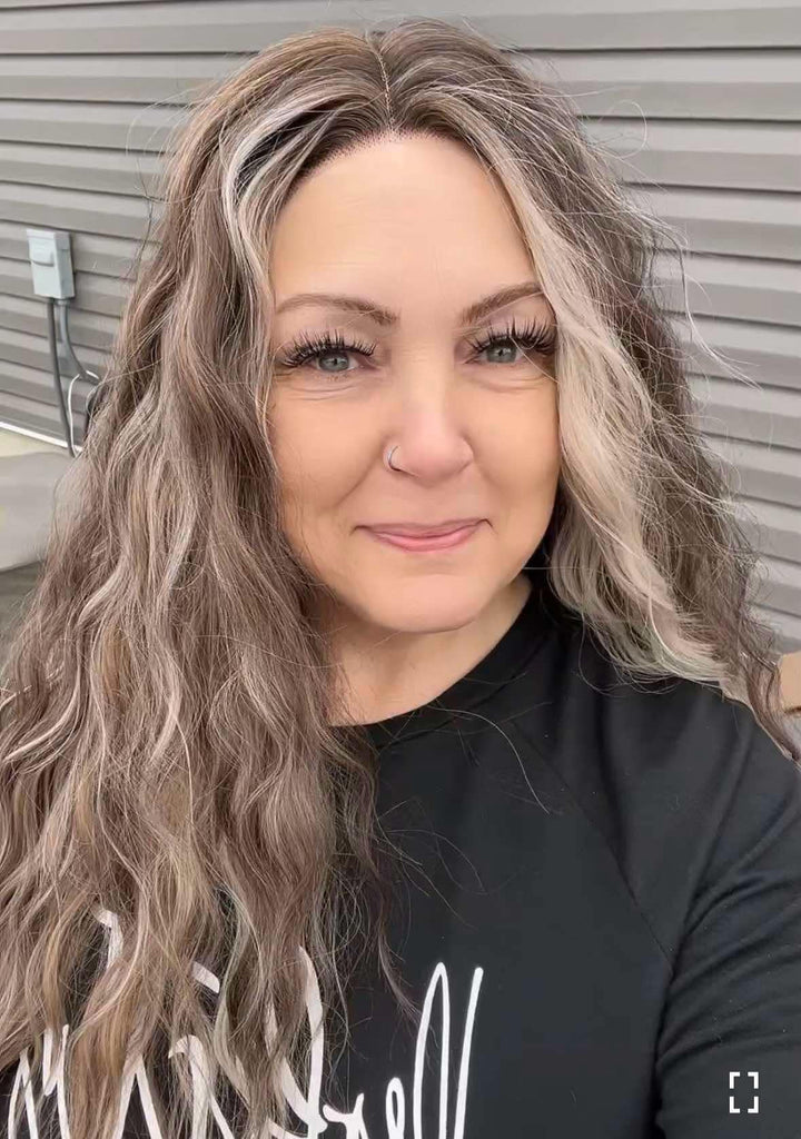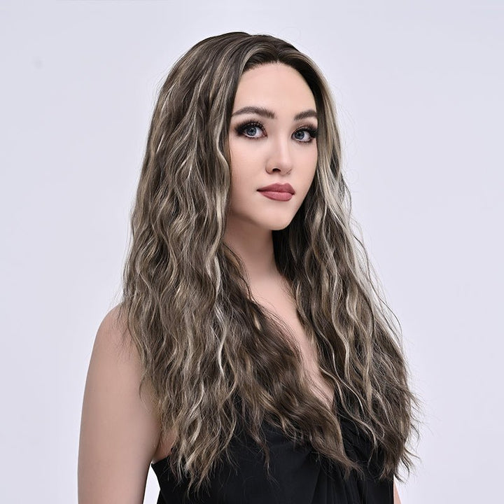 Brenda Collection-Tia-26 inches Skunk stripe Ash brown highlight body wave lace wigs