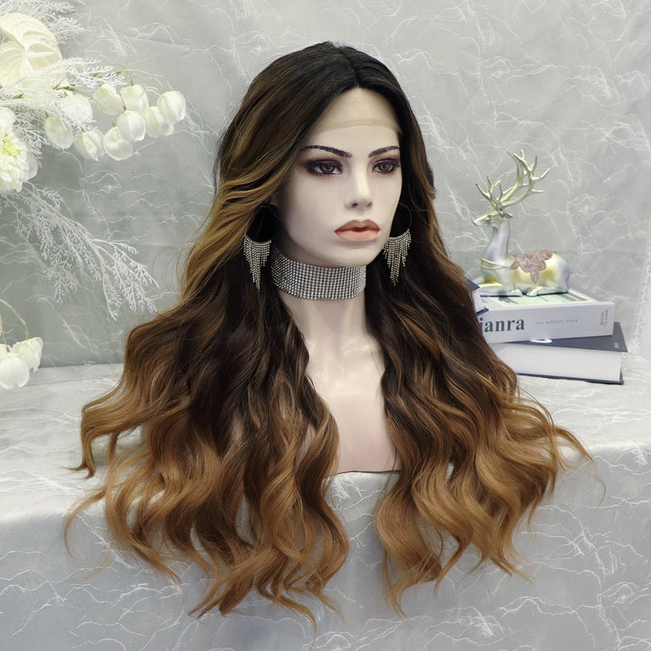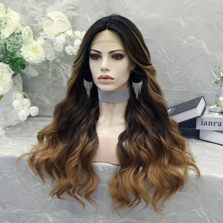 Brenda Collection Wendy 26 inches T part  Lace Front Cap body wavy Dark Brown synthetic lace wig