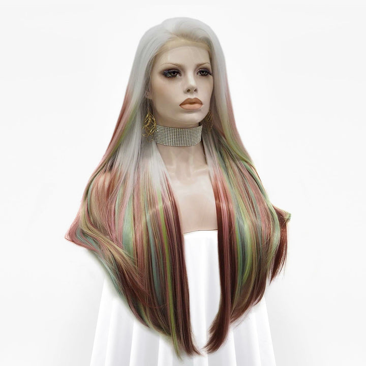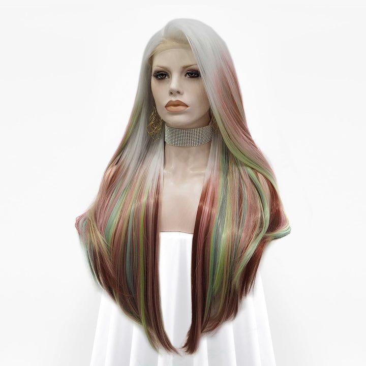 Layla - Red Green Blonde White Mixed Color Long Straight Synthetic Lace Front Wig