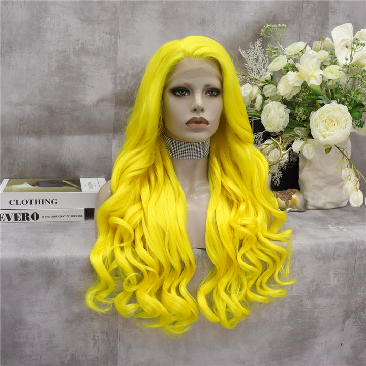 Lemon Soda - Neon Yellow Long Synthetic Lace Front Wig For Drag