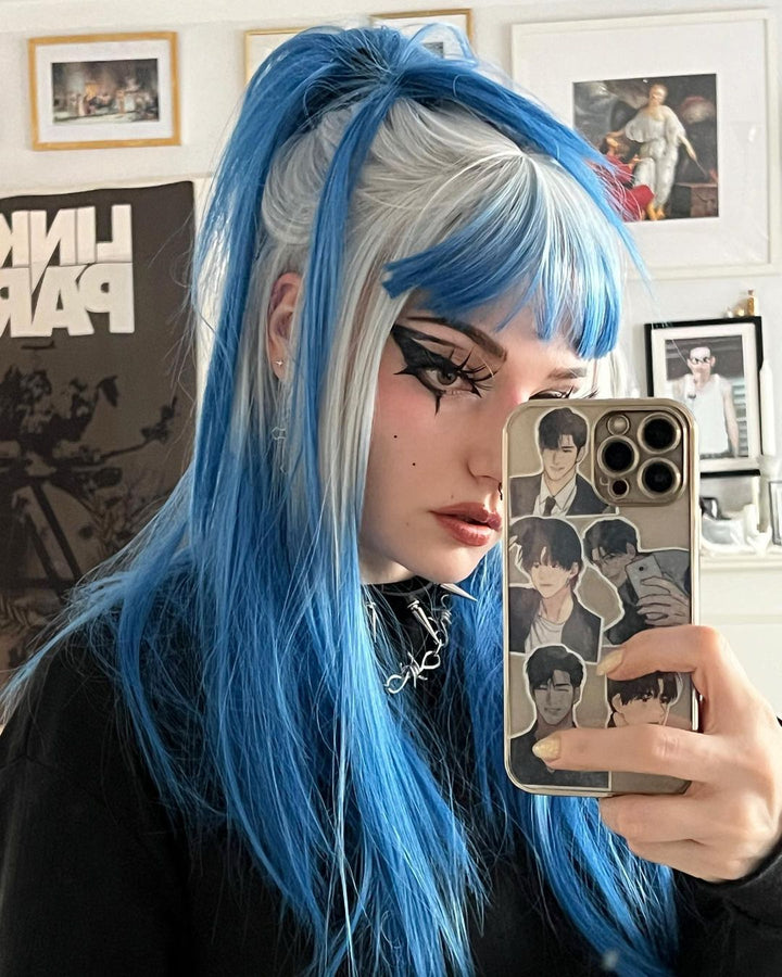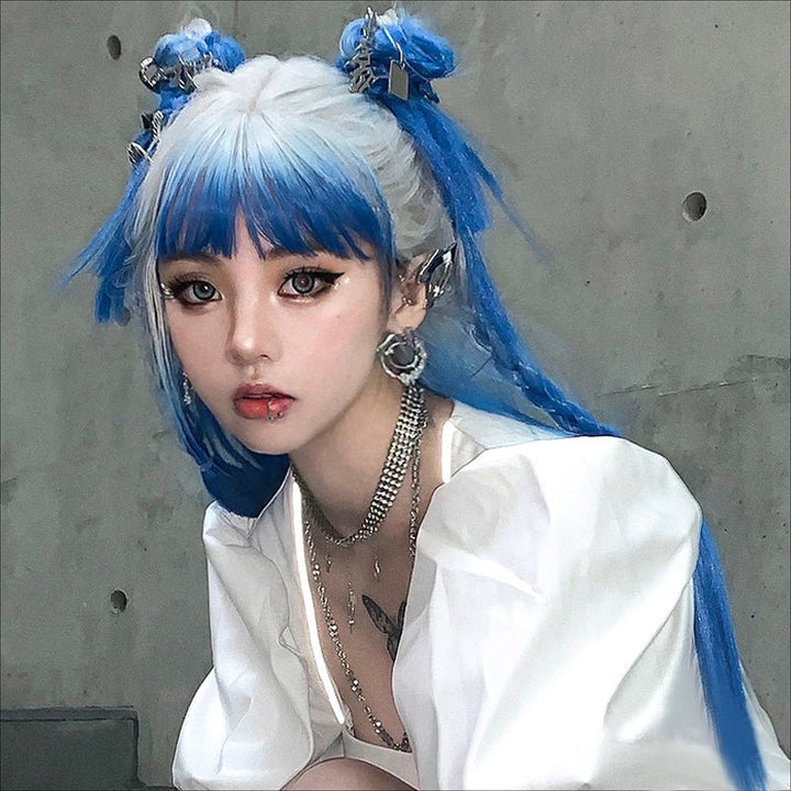 Lolita Harajuku Long Wavy Blue Ombre Girls Wig