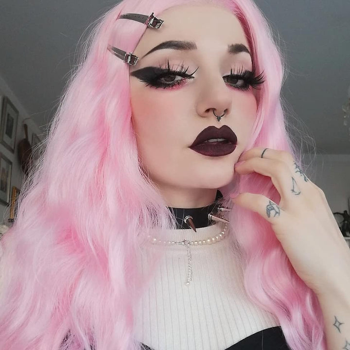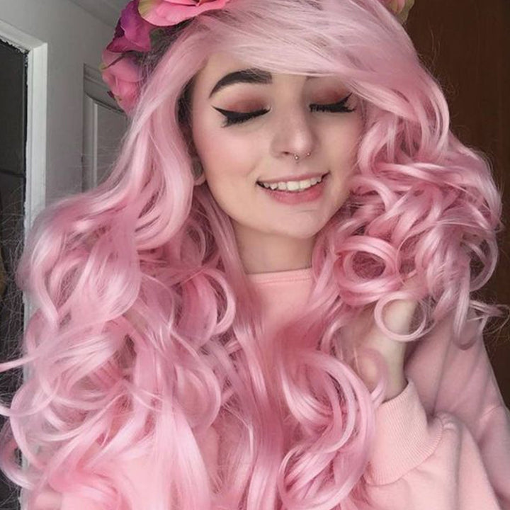 Mary Jane - Pink Long Wavy Synthetic Lace Front Wig