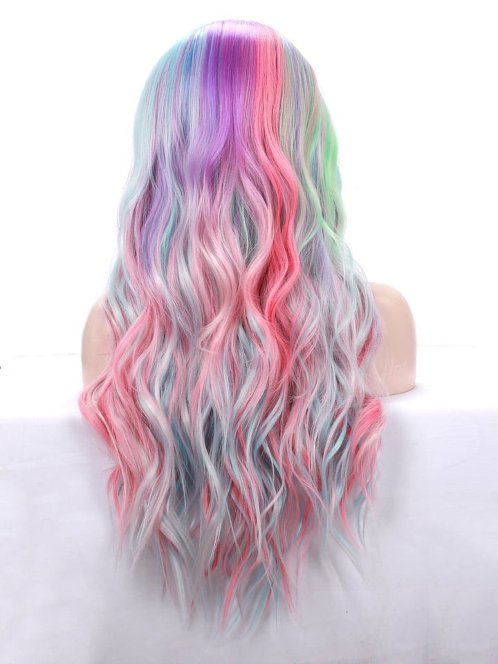 Mermaid Colorful Long Wave Synthetic Lace Front Cosplay Wig