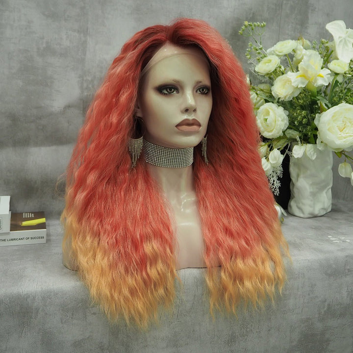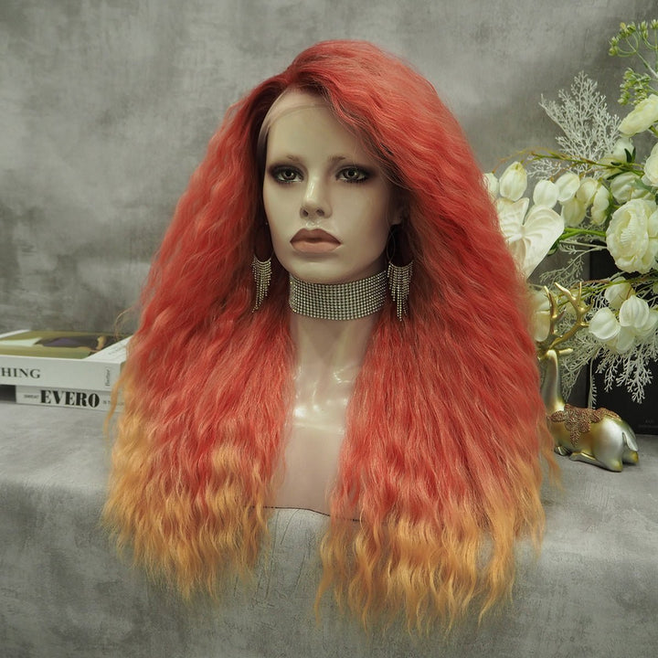 Ombre Orange Wig Curly Synthetic Lace Front Wig