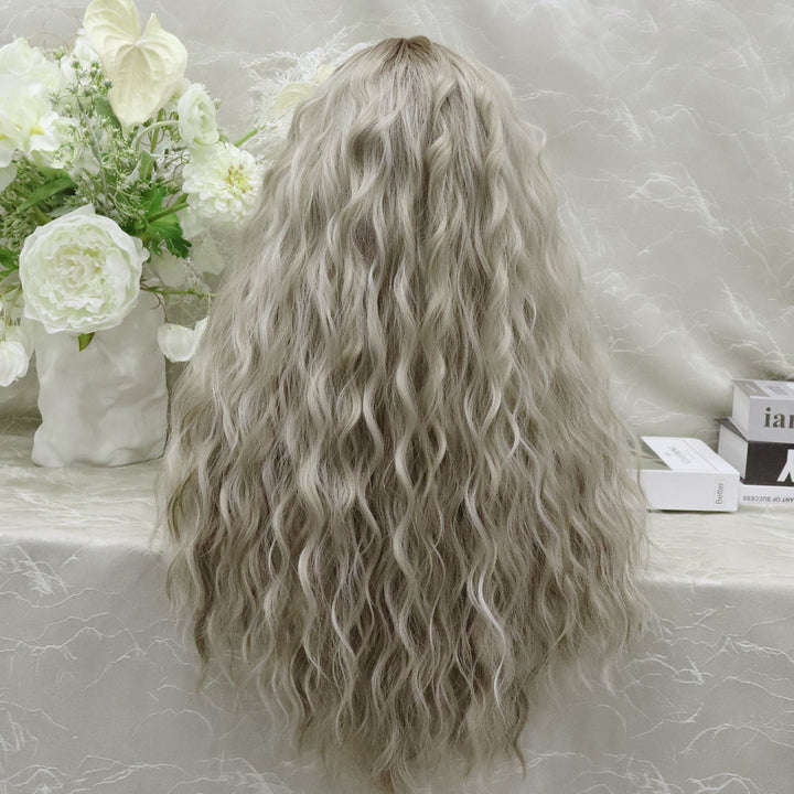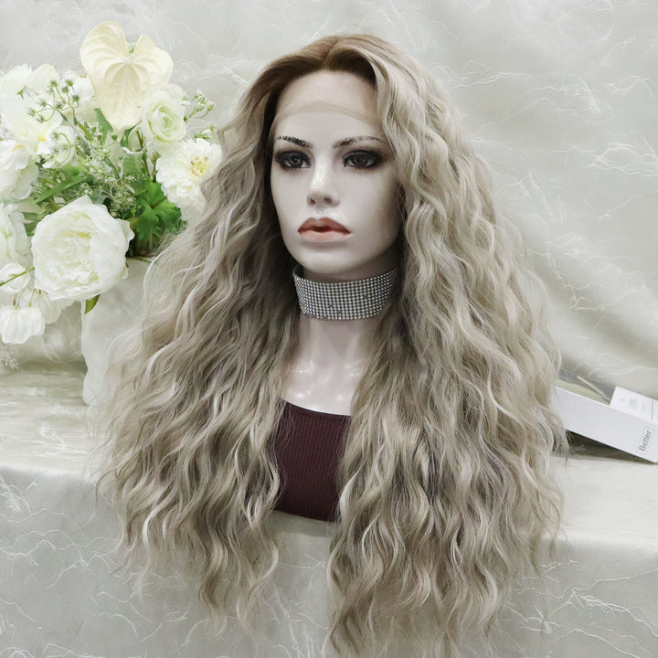 ON-SALE Nena Ombre Dark Brown Roots to Ash Blonde Water Wave Synthetic Lace Wig