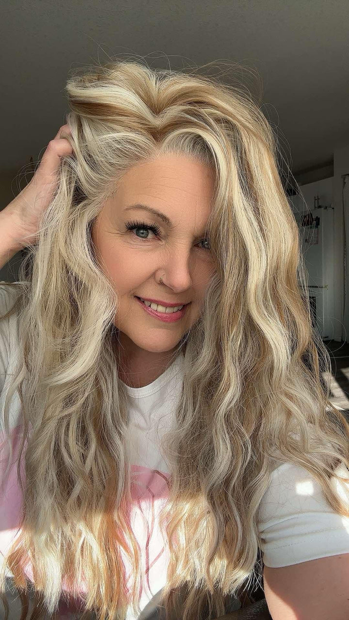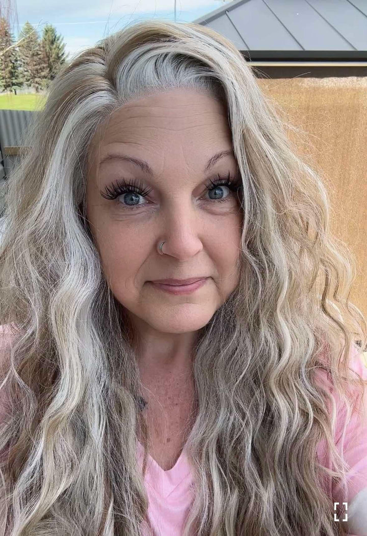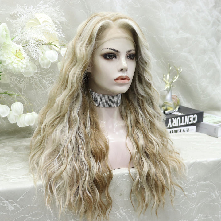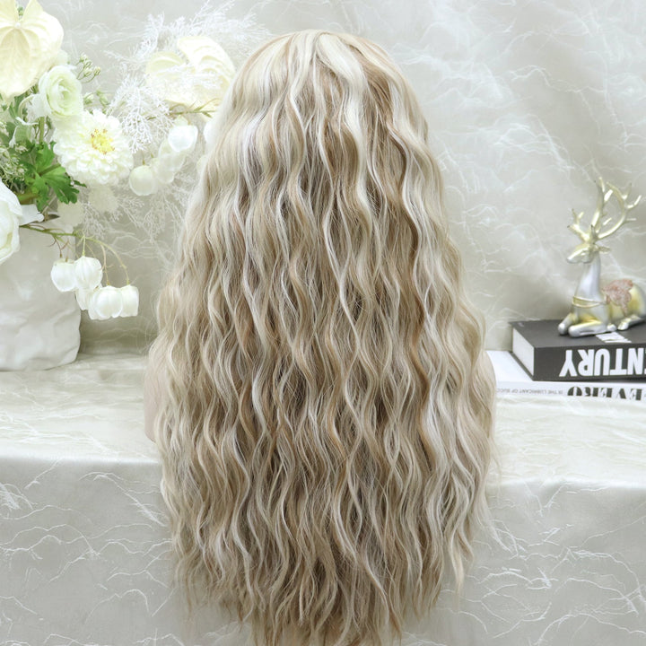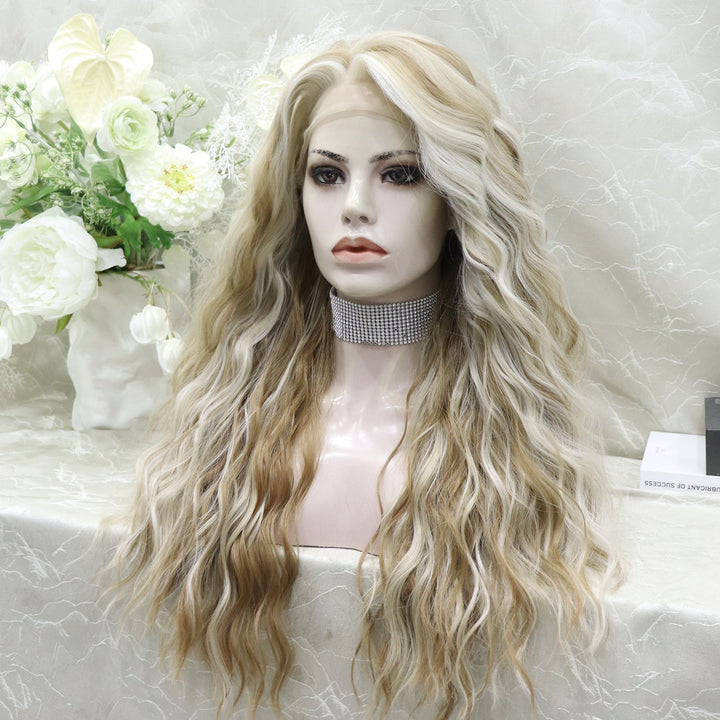Brenda Collection-Phoebe Skunk Stripe Cream Blonde With Highlight Water Wave 13*4 Lace Front Wig