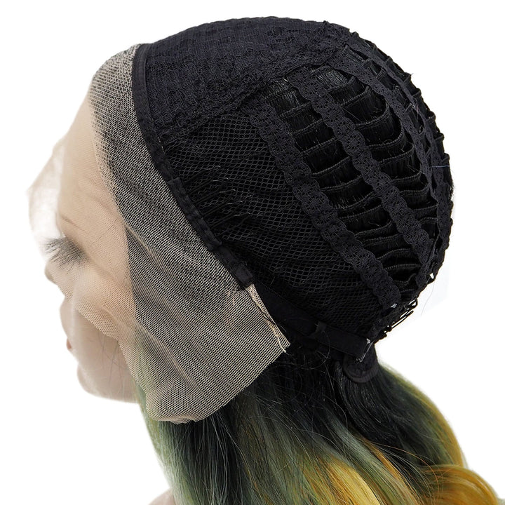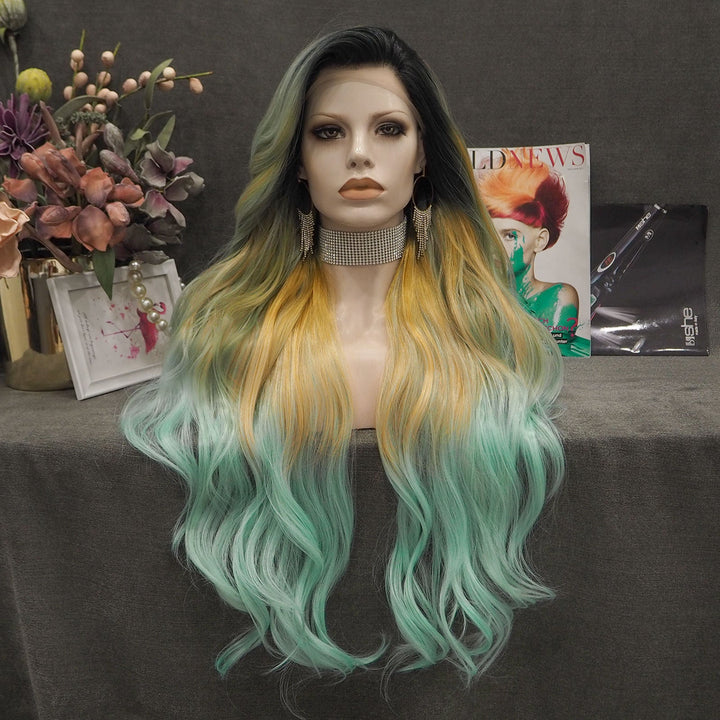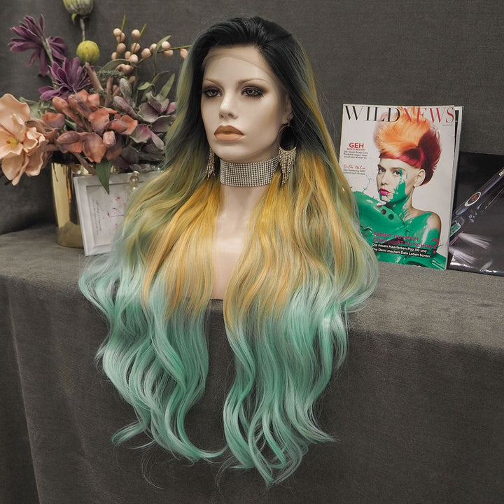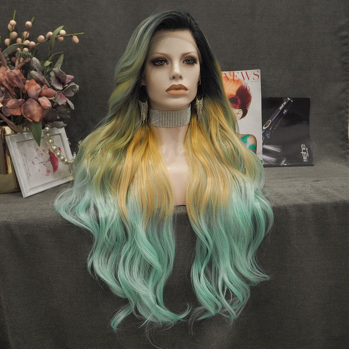 Sunflower - Light Yellow And Green Ombre With Dark Root Synthetic Lace Front Wig