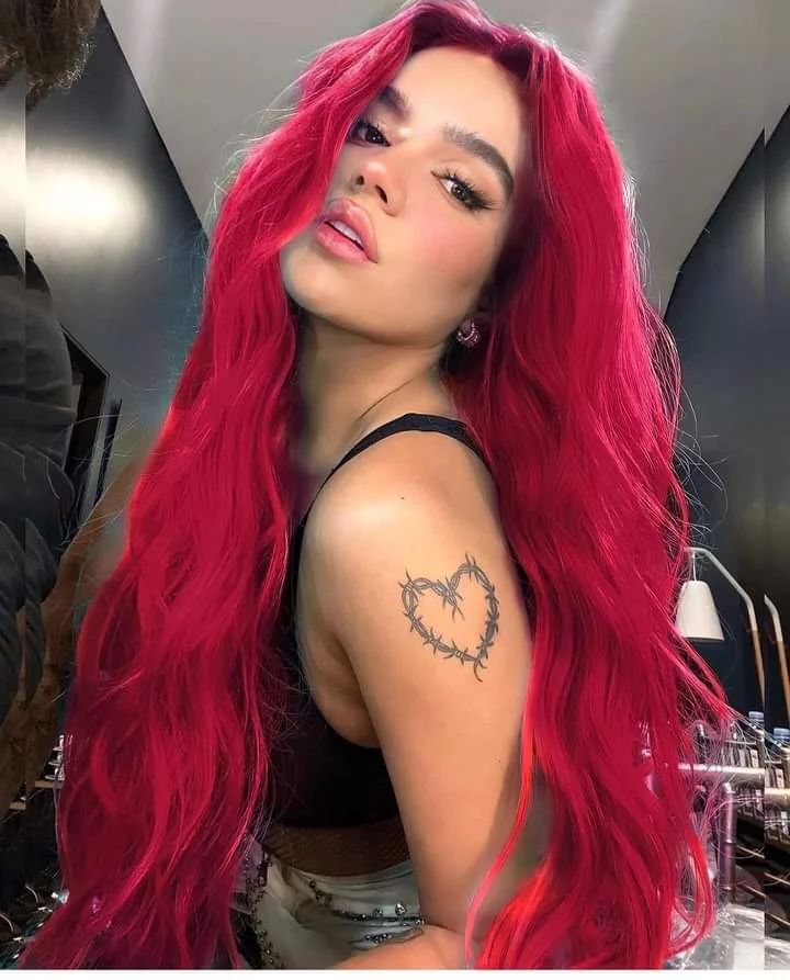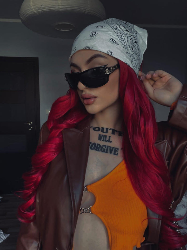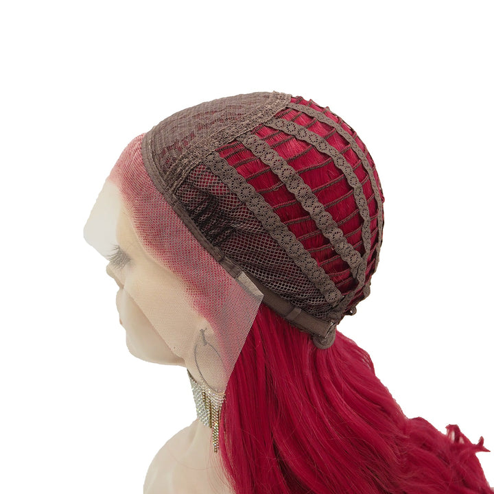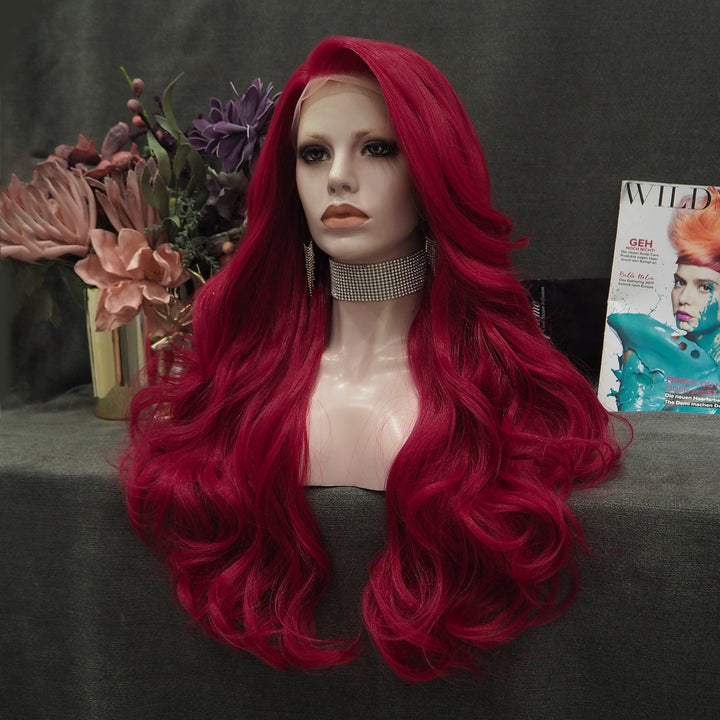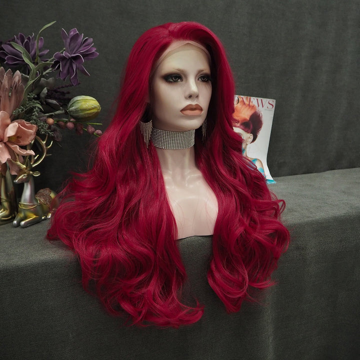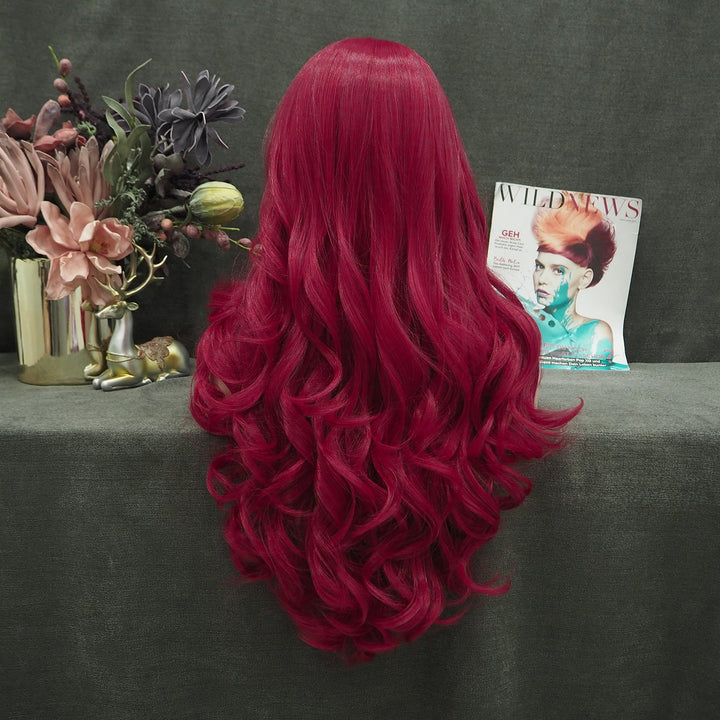 Rose Red Long Wave Synthetic Lace Front Daily Wig